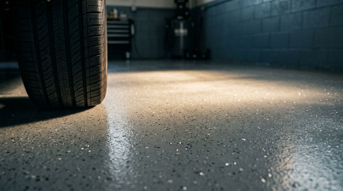 A garage floor can look clean and still turn slick fast. Rainwater, tire drips, and a thin film of oil can make a hard surface[…]