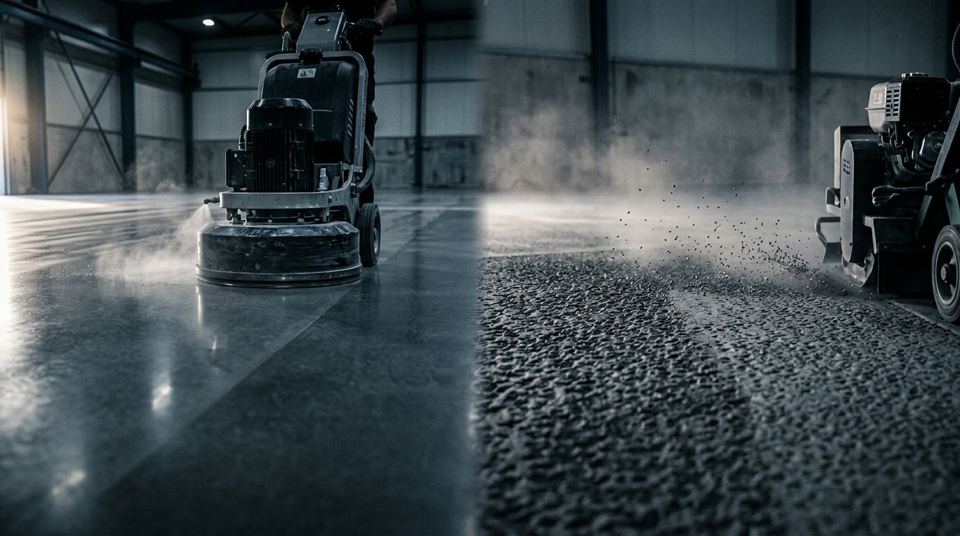 Most homeowners land on grinding because garages and basements are edge-heavy, finish-sensitive spaces. Many commercial projects lean toward shot blasting because open square footage rewards speed and a stronger profile.